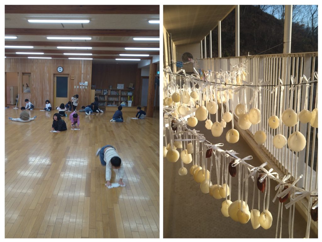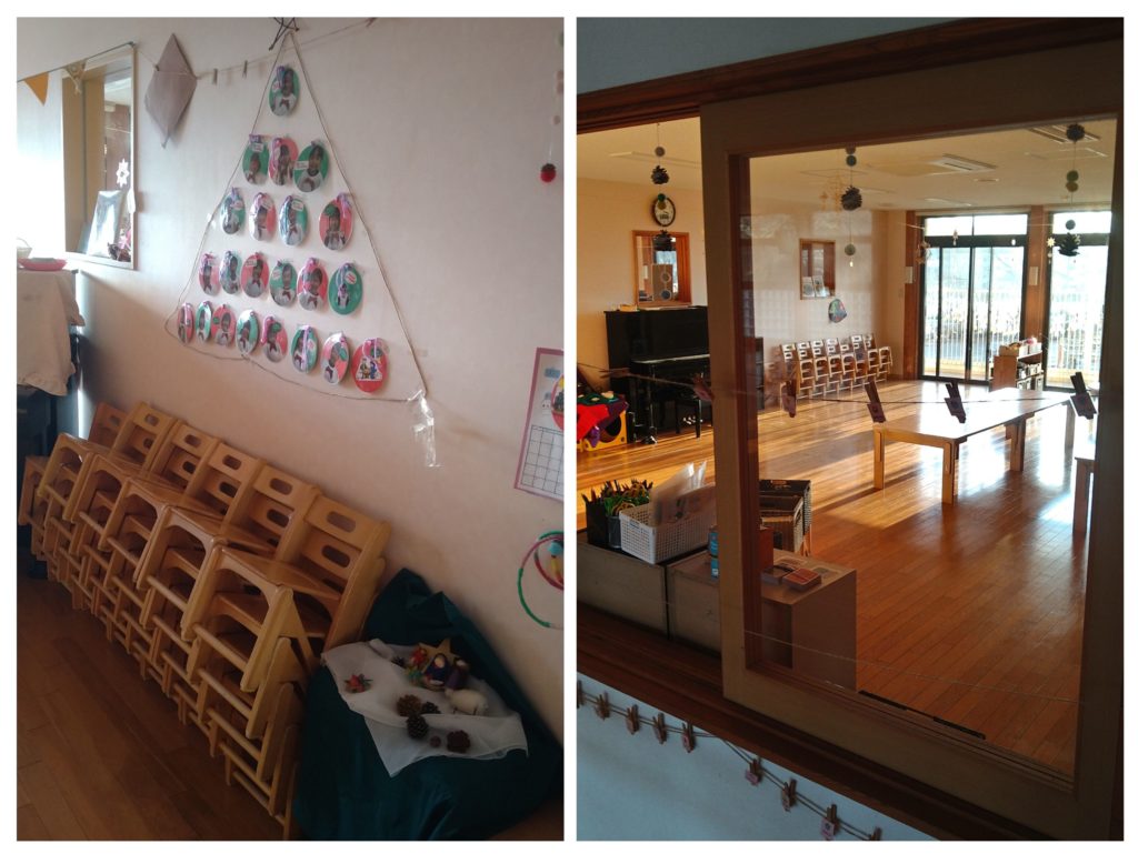 本日が年内最後の保育となりました。小雪が舞う中でしたが子どもたちは元気に過ごしていました。今週は各クラスで大掃除をしてくれて、園中をピカピカにしてくれました。また、4歳児は園で収穫した大根で”へそ大根”を作りに挑戦しました。これは今後の給食の材料になる予定で、寒さで出来上がることを楽しみに年末のお休みに入ったことでしょう。掃除が終わり綺麗になった保育室には、全て揃ったアドベントカレンダーが飾られて、クリスマスの余韻を残していました。