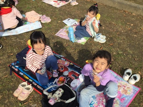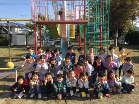 あそぼう会で一緒に遊んだそらまめくんから昨日手紙が届きました。その手紙には、遠足でどんぐりや落ち葉を集めてきて欲しいと言うお願いでした。そらまめくんの為に線路を渡り、旭町公園まで一生懸命歩きました。公園では、自分で作ったお散歩バックにお願いされていたどんぐりや落ち葉を入れたり、まめの仲間探し(宝探し)をしたり、遊具を使って遊びました。お昼ご飯はお家の方が作ってくれたお弁当を食べ、とても楽しい遠足になりました。