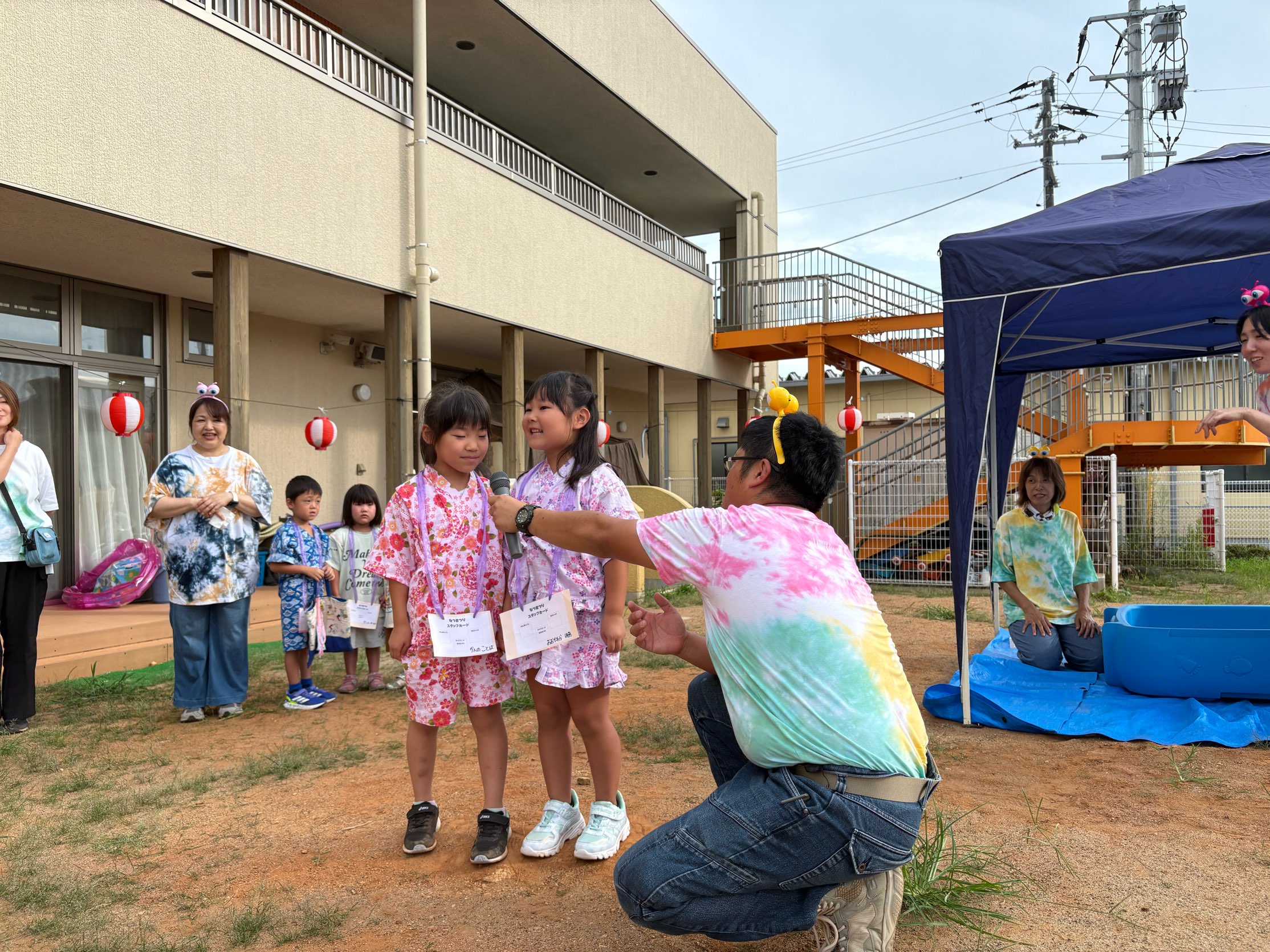 先日楽しいことがたくさんのハッピーサマーデーでがありました。お家の方と離れて1日過ごすことで朝は緊張したり、泣き出す子もいました。でも「楽しいね」「次はみんなで何する?」と笑顔がいっぱいの1日となりました。たくさんの経験を通してまた一つ子どもたちが大きくなったように感じます。子どもたちにとって大切な思い出の一つになれば,と思います。