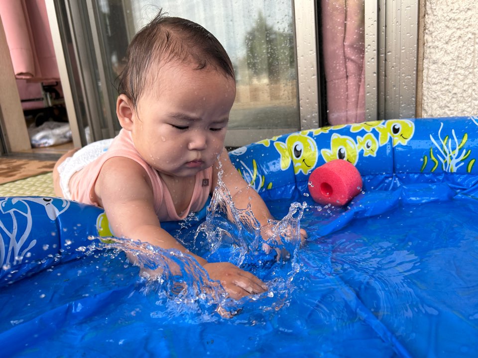 最初は泣いていた子どもたちでしたが、いまとなってはダイナミックに水しぶきをあげて楽しんでいます。
