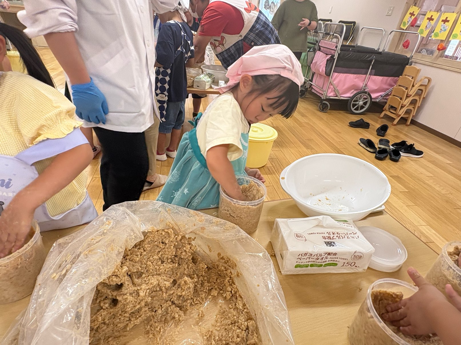 子どもたちの楽しみにしていた味噌作りが行われました。