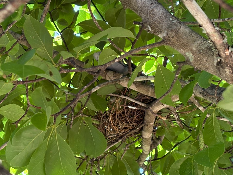 その中で小さな鳥の声を聞きつけた子どもたちが見つけたのは小鳥の巣。お母さん鳥が、産まれたであろう赤ちゃん鳥を守っているしっぽが見えました。