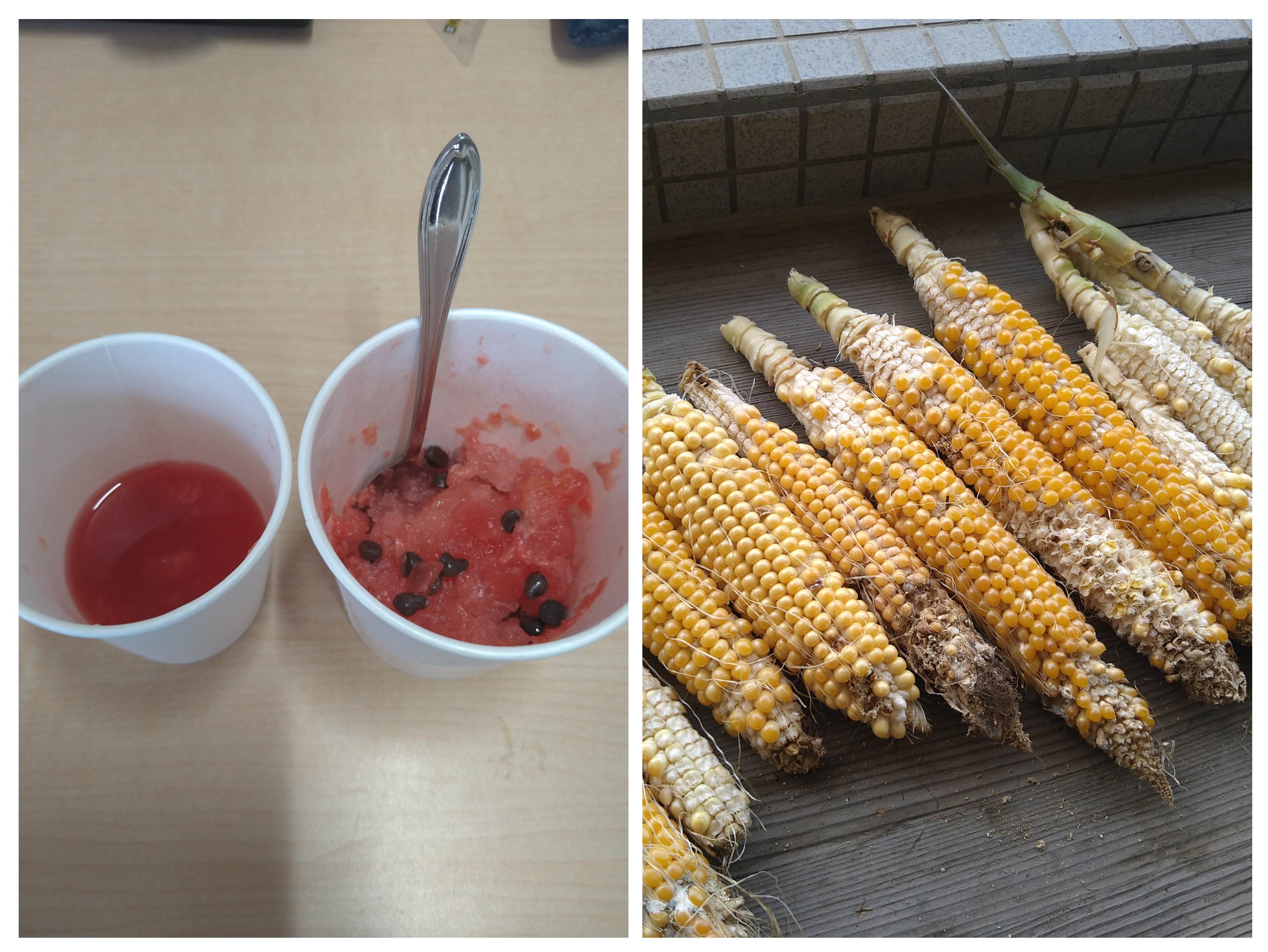5歳児からはスイカジュースにスイカシャーベットの差し入れをもらいました!今年はスイカの収穫はできましたが、トウモロコシはうまくいきませんでした。これも良い経験として次に繋げたと思います。