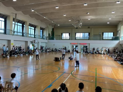 小学校の大きな体育館で行いましたが、子どもたちはみんないつも通り元気な姿で参加していました。