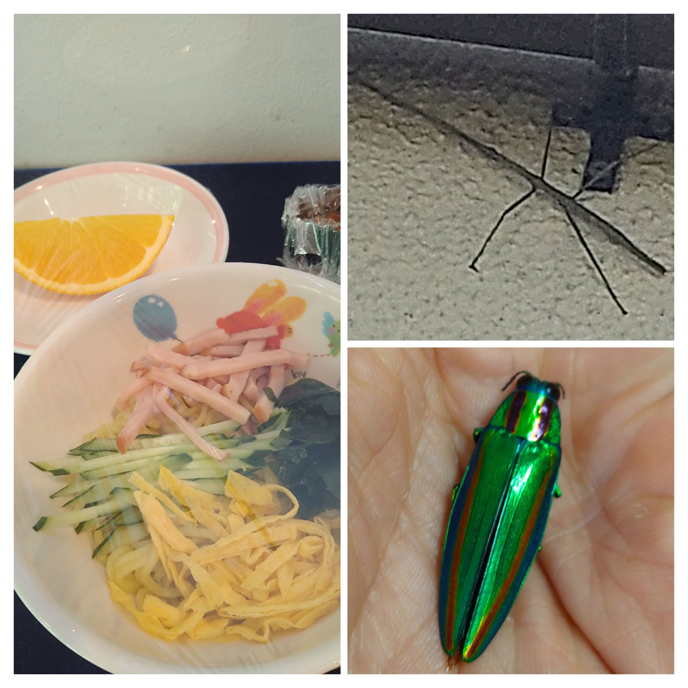 園庭では、ナナフシやタマムシも見つけ、その動きの面白さや、姿の美しさに興味津々です。身近な昆虫たちを見ながら、単なる進化ではなく、神様の創造された生命の不思議さを感じました。