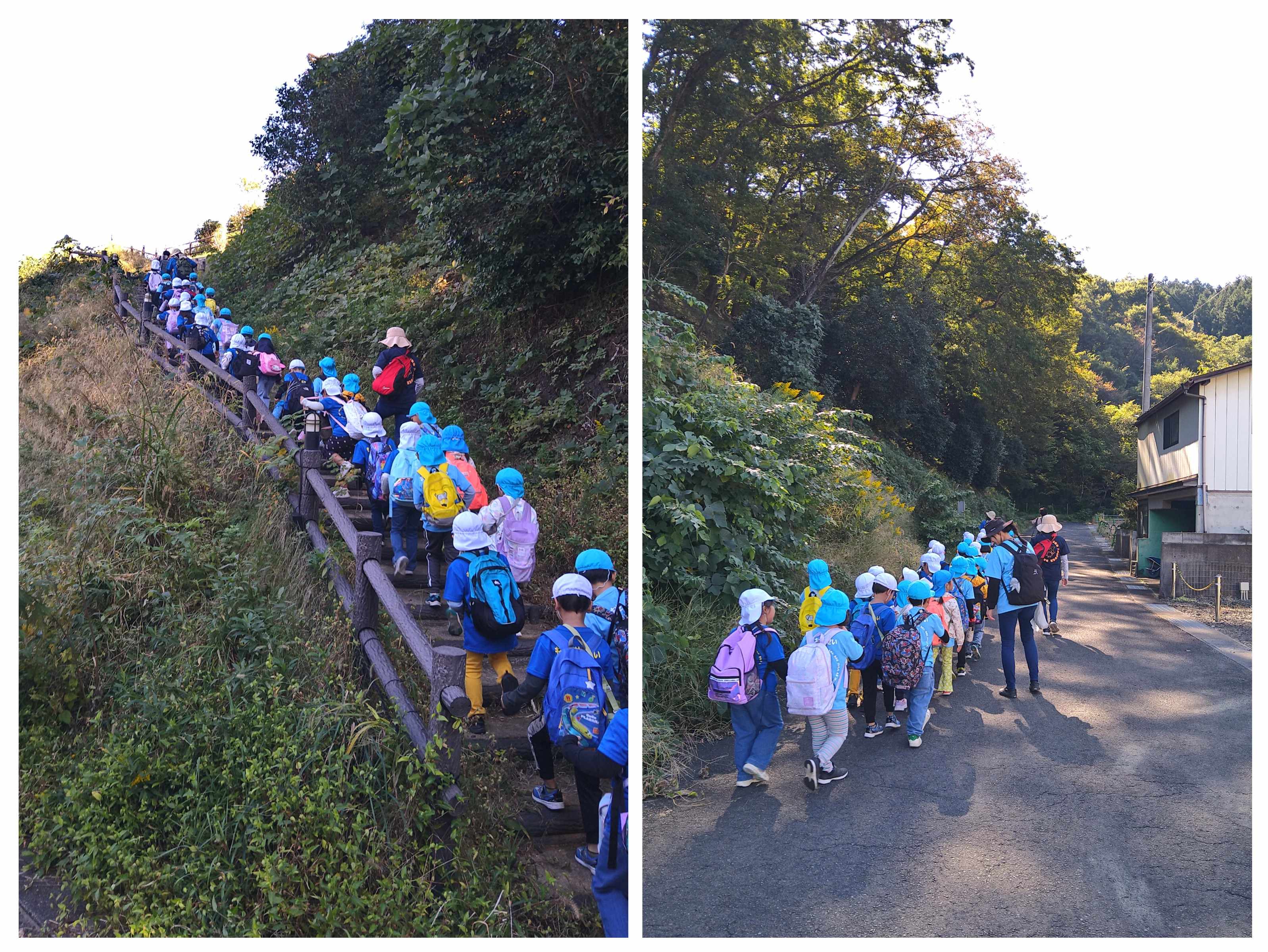24日(金)5歳児のぞみ組・めぐみ組は船岡城址公園まで、遠足に出かけていました。園から頂上までは約3キロ。行はみんなで頑張って歩き、公園内でお弁当を食べて、帰りは電車に乗って帰ってきました。