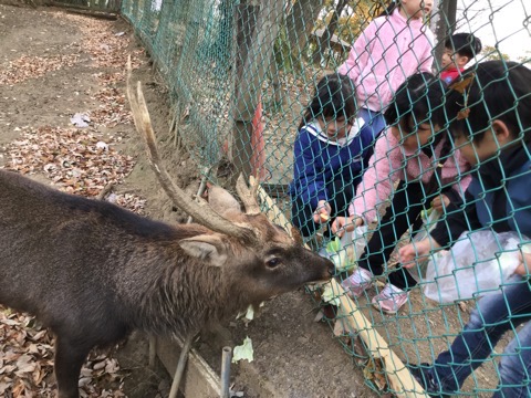 その後は、もちぶた館で動物にえさをあげました。「怖い」と言いながらもお腹が空いた動物たちにたくさん野菜をあげていました。