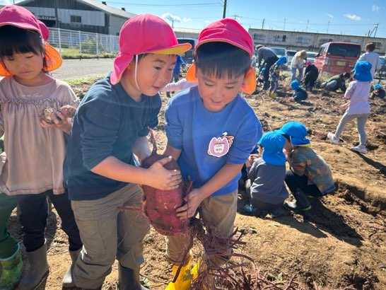 大きいお芋が沢山取れました!大きなお芋もみんなで力を合わせて抜きました。焼き芋をしてみんなで食べるのが待ち遠しいですね♡